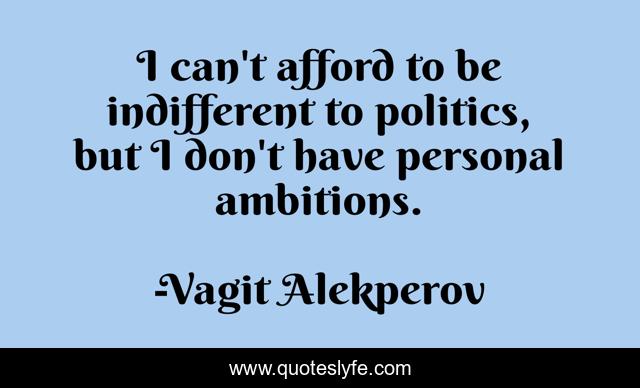 This page presents the quote "I can't afford to be indifferent to politics, but I don't have personal ambitions.". Author of this quote is Vagit Alekperov. This quote is about personal, afford,.