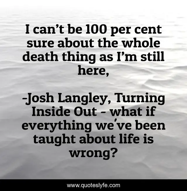 This page presents the quote "I can’t be 100 per cent sure about the whole death thing as I’m still here, ". Author of this quote is Josh Langley, Turning Inside Out - what if everything we've been taught about life is wrong?. This quote is about afterlife, adventure,.