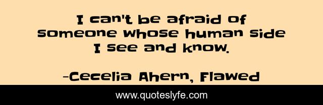 This page presents the quote "I can't be afraid of someone whose human side I see and know.". Author of this quote is Cecelia Ahern, Flawed. This quote is about fear, knowledge,.