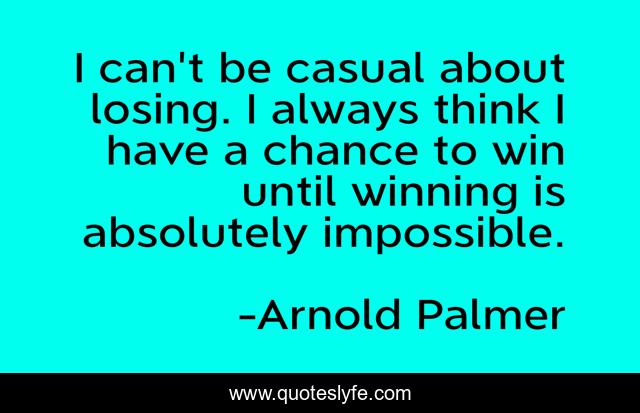 This page presents the quote "I can't be casual about losing. I always think I have a chance to win until winning is absolutely impossible.". Author of this quote is Arnold Palmer. This quote is about losing, impossible, winning,.