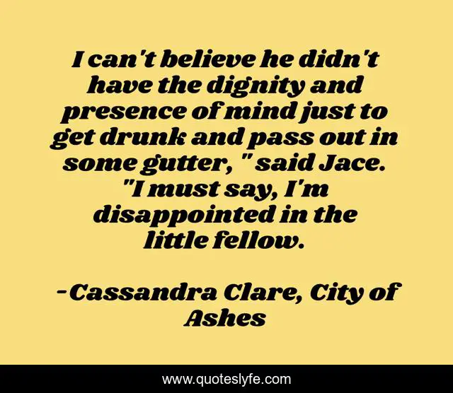 I can't believe he didn't have the dignity and presence of mind just to get drunk and pass out in some gutter, " said Jace. "I must say, I'm disappointed in the little fellow.