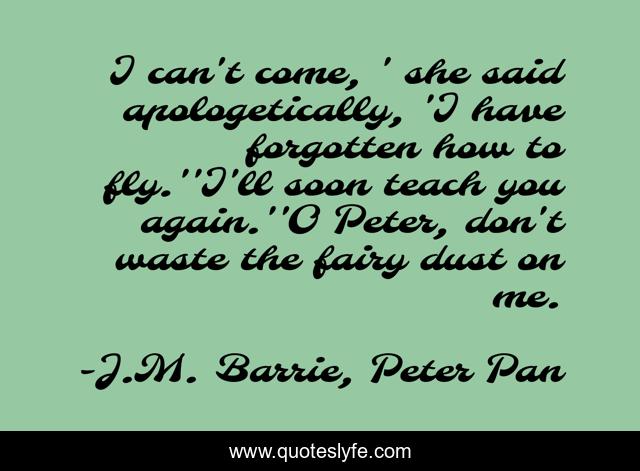"J.M. Barrie, Peter Pan Quotes." Quoteslyfe.com, 2025. Mon. 08 Dec. 2025. <https://www.quoteslyfe.com/quote/I-can-t-come-she-said-apologetically-82453>.