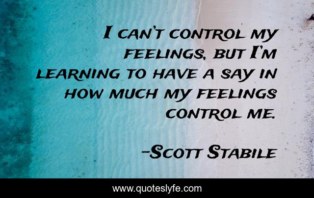 This page presents the quote "I can’t control my feelings, but I’m learning to have a say in how much my feelings control me.". Author of this quote is Scott Stabile. This quote is about relationships, love, feelings, happiness, truth, affection,.