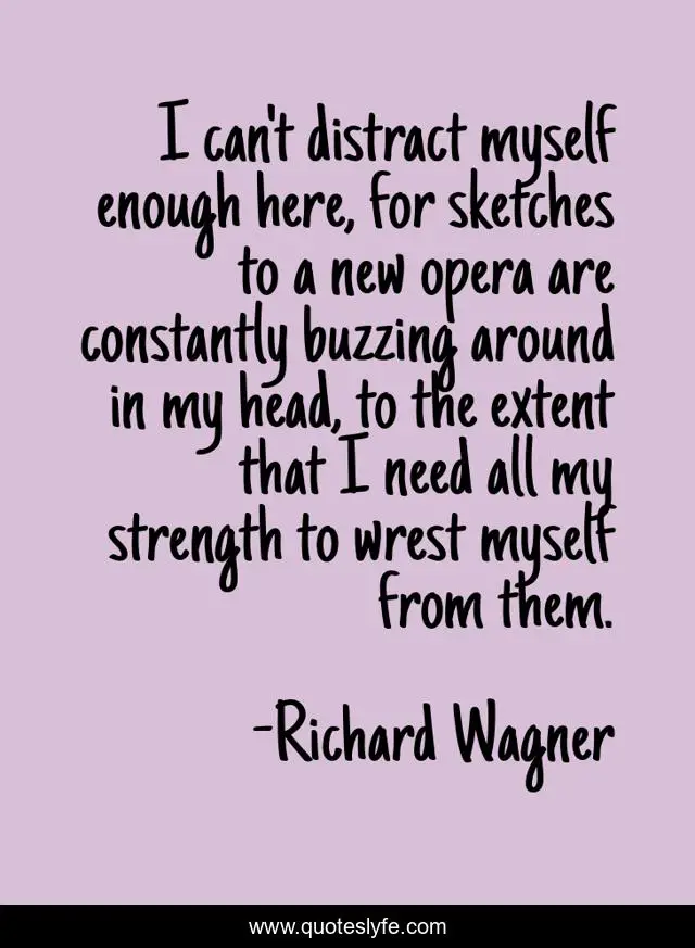 This page presents the quote "I can't distract myself enough here, for sketches to a new opera are constantly buzzing around in my head, to the extent that I need all my strength to wrest myself from them.". Author of this quote is Richard Wagner. This quote is about new, myself, head,.