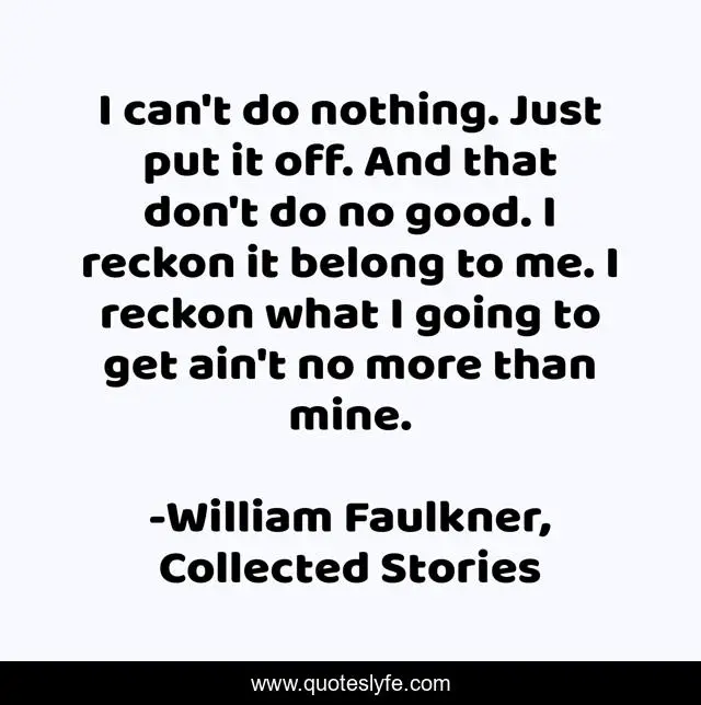 This page presents the quote "I can't do nothing. Just put it off. And that don't do no good. I reckon it belong to me. I reckon what I going to get ain't no more than mine.". Author of this quote is William Faulkner, Collected Stories. .