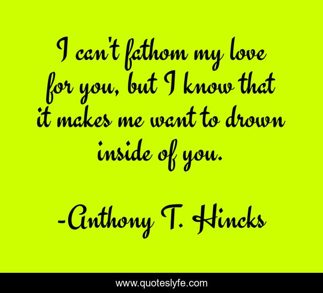This page presents the quote "I can't fathom my love for you, but I know that it makes me want to drown inside of you.". Author of this quote is Anthony T. Hincks. This quote is about life, love, inside, philosophy, fathom, depth, drown, makes, affection,.