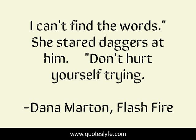 This page presents the quote "I can't find the words." She stared daggers at him. "Don't hurt yourself trying.". Author of this quote is Dana Marton, Flash Fire. This quote is about romantic-thriller, suspense, navy-seal-romance,.