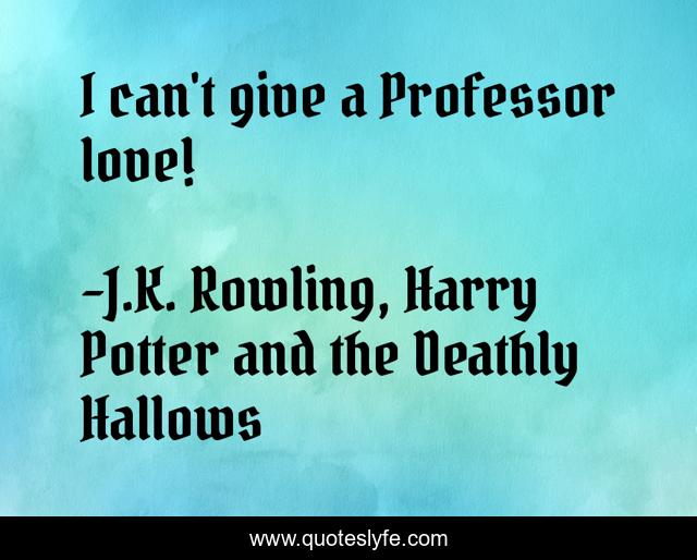 "J.K. Rowling, Harry Potter and the Deathly Hallows Quotes." Quoteslyfe.com, 2025. Mon. 08 Dec. 2025. <https://www.quoteslyfe.com/quote/I-can-t-give-a-Professor-love-6743>.