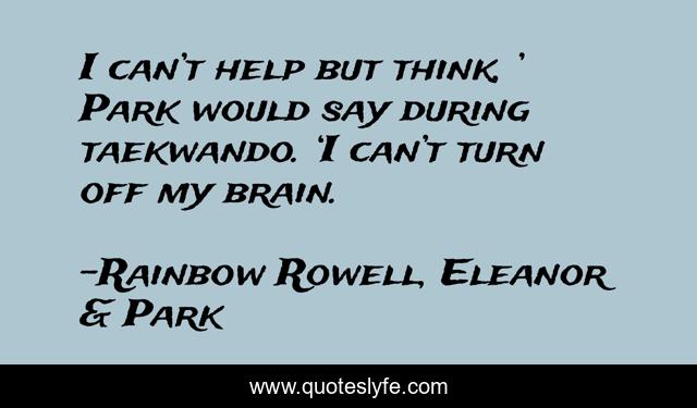 This page presents the quote "I can’t help but think, ’ Park would say during taekwando. ‘I can’t turn off my brain.". Author of this quote is Rainbow Rowell, Eleanor & Park. This quote is about thinking, overthinking,.