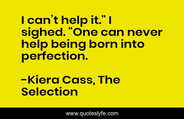 This page presents the quote "I can’t help it." I sighed. "One can never help being born into perfection.". Author of this quote is Kiera Cass, The Selection. This quote is about maxon, america,.