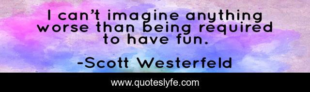 This page presents the quote "I can’t imagine anything worse than being required to have fun.". Author of this quote is Scott Westerfeld. .