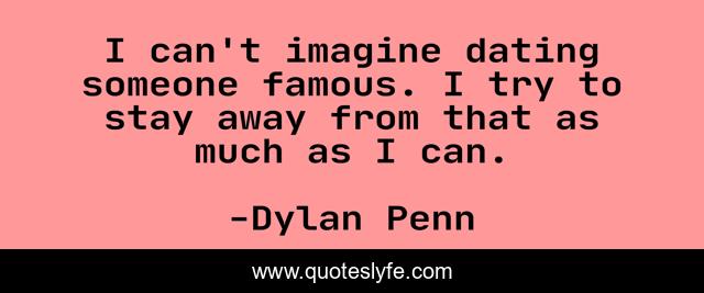 This page presents the quote "I can't imagine dating someone famous. I try to stay away from that as much as I can.". Author of this quote is Dylan Penn. This quote is about try, famous, i can,.