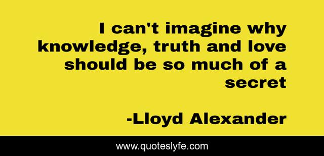This page presents the quote "I can't imagine why knowledge, truth and love should be so much of a secret". Author of this quote is Lloyd Alexander. This quote is about fantasy, secret, love, knowledge, affection,.