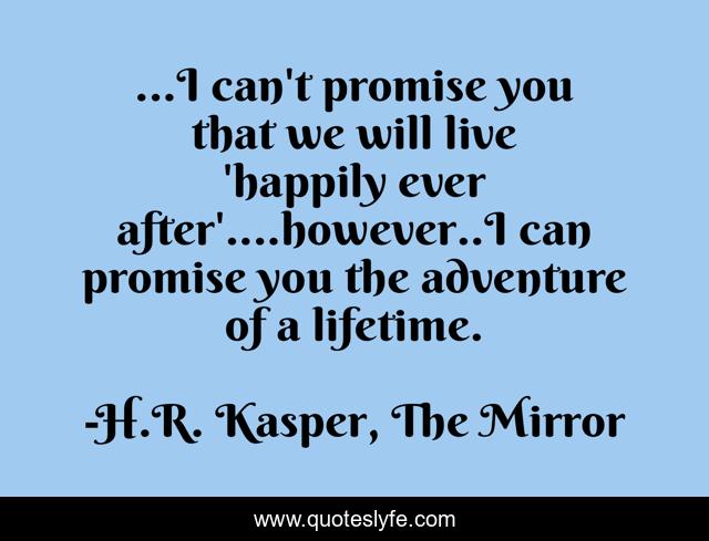 This page presents the quote "...I can't promise you that we will live 'happily ever after'....however..I can promise you the adventure of a lifetime.". Author of this quote is H.R. Kasper, The Mirror. This quote is about romance, fantasy, young-adult-fantasy, indie-author,.