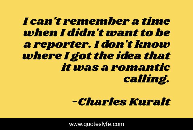 This page presents the quote "I can't remember a time when I didn't want to be a reporter. I don't know where I got the idea that it was a romantic calling.". Author of this quote is Charles Kuralt. This quote is about remember, time,.
