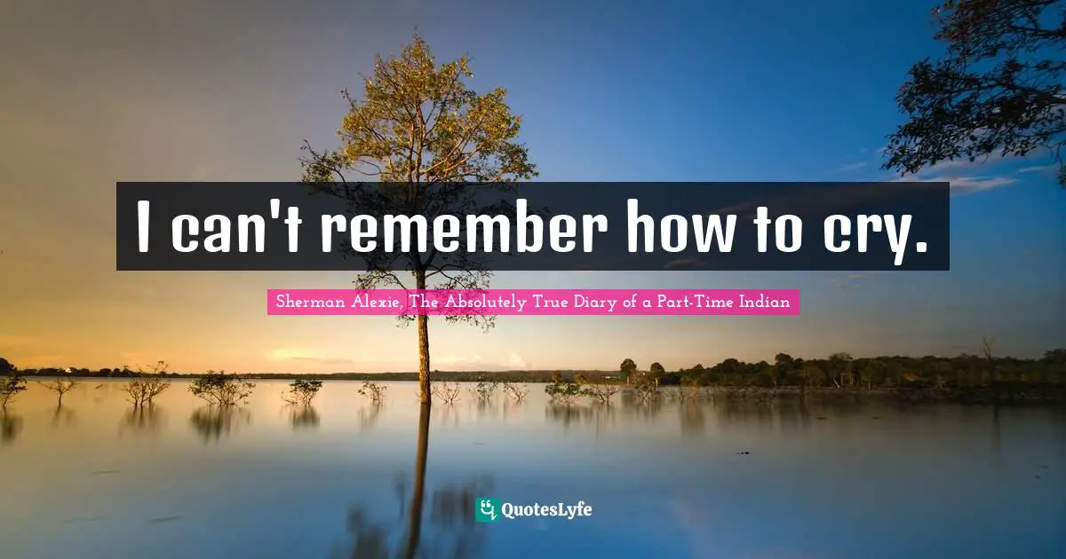 This page presents the quote "I can't remember how to cry.". Author of this quote is Sherman Alexie, The Absolutely True Diary of a Part-Time Indian. This quote is about cry, can-t, remember, how-to,.