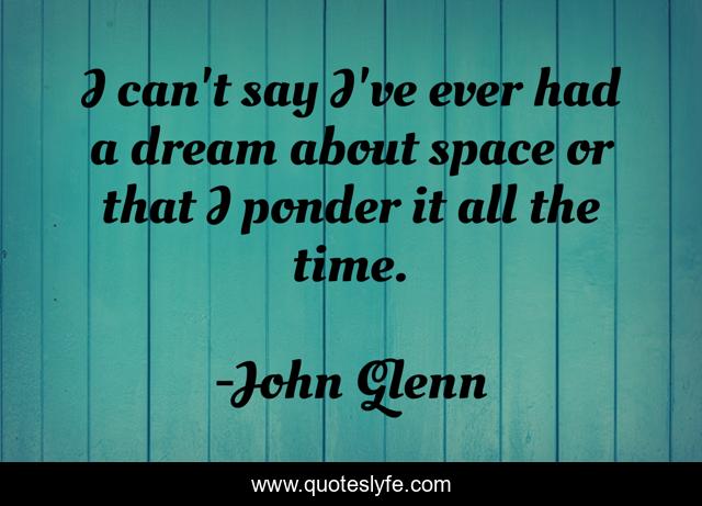 This page presents the quote "I can't say I've ever had a dream about space or that I ponder it all the time.". Author of this quote is John Glenn. This quote is about dream, time,.