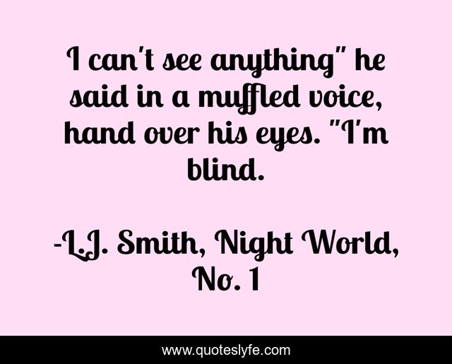 This page presents the quote "I can't see anything" he said in a muffled voice, hand over his eyes. "I'm blind.". Author of this quote is L.J. Smith, Night World, No. 1. This quote is about funny, comedy, hilarious,.