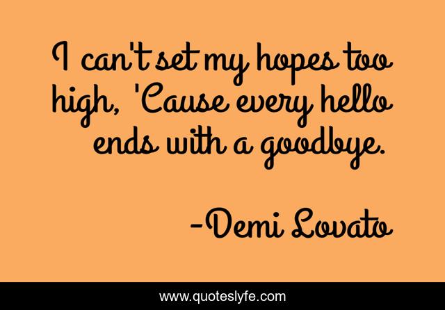 This page presents the quote "I can't set my hopes too high, 'Cause every hello ends with a goodbye.". Author of this quote is Demi Lovato. This quote is about catch-me, sad, demi-lovato, sing, love, affection,.