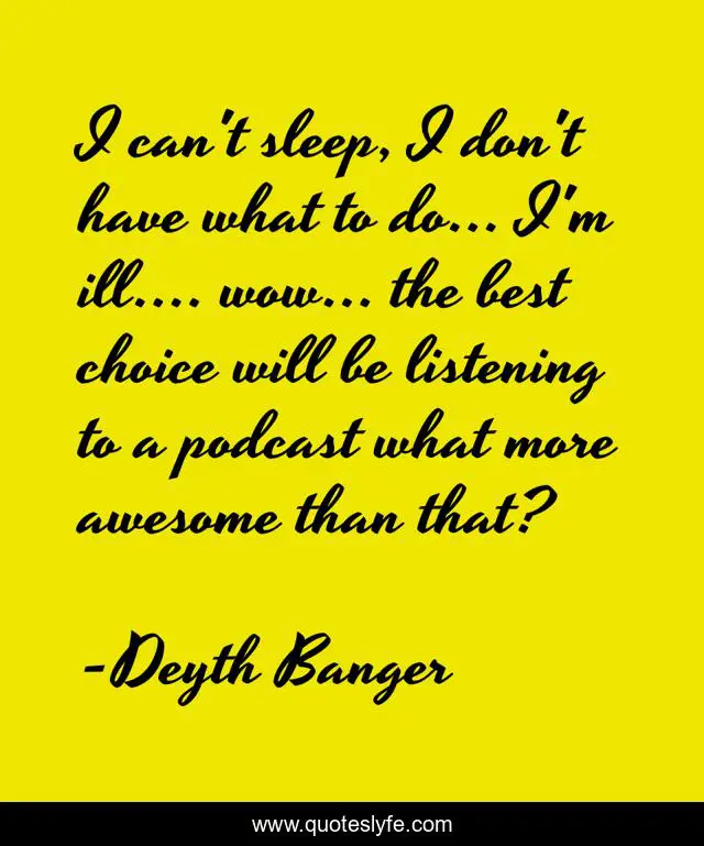 This page presents the quote "I can't sleep, I don't have what to do... I'm ill.... wow... the best choice will be listening to a podcast what more awesome than that?". Author of this quote is Deyth Banger. This quote is about don-t, awesome, sleep,.