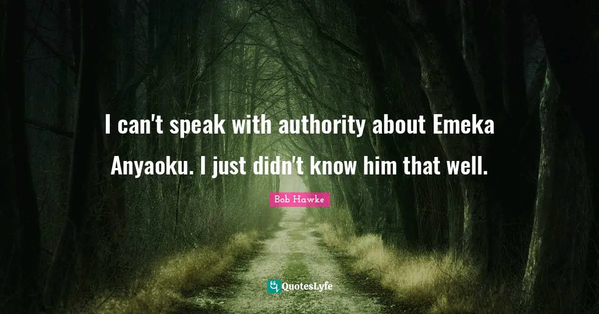 This page presents the quote "I can't speak with authority about Emeka Anyaoku. I just didn't know him that well.". Author of this quote is Bob Hawke. This quote is about speak, wells, i can, authority,.