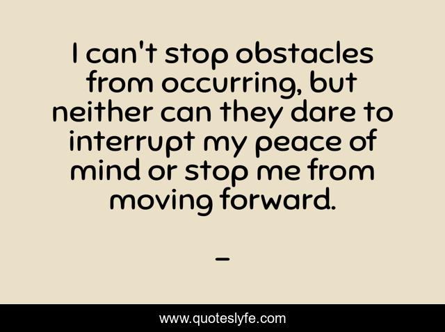 I can't stop obstacles from occurring, but neither can they dare to interrupt my peace of mind or stop me from moving forward.
