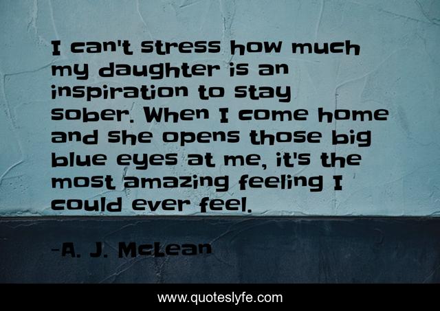 This page presents the quote "I can't stress how much my daughter is an inspiration to stay sober. When I come home and she opens those big blue eyes at me, it's the most amazing feeling I could ever feel.". Author of this quote is A. J. McLean. This quote is about home, stress, daughter,.