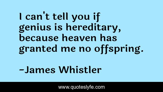 This page presents the quote "I can't tell you if genius is hereditary, because heaven has granted me no offspring.". Author of this quote is James Whistler. This quote is about me, genius,.