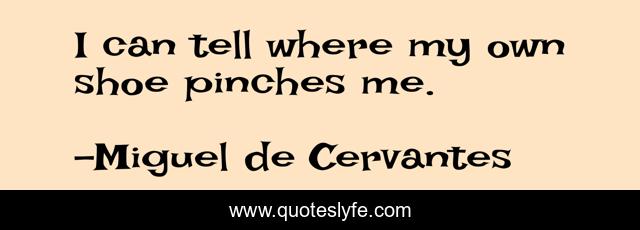 This page presents the quote "I can tell where my own shoe pinches me.". Author of this quote is Miguel de Cervantes. .
