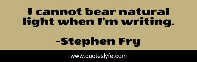 This page presents the quote "I cannot bear natural light when I'm writing.". Author of this quote is Stephen Fry. This quote is about light, sunshine, unbearable, writing,.