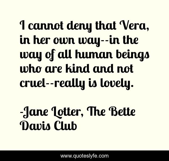 "Jane Lotter, The Bette Davis Club Quotes." Quoteslyfe.com, 2025. Sat. 06 Dec. 2025. <https://www.quoteslyfe.com/quote/I-cannot-deny-that-Vera-in-her-222463>.