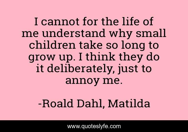 This page presents the quote "I cannot for the life of me understand why small children take so long to grow up. I think they do it deliberately, just to annoy me.". Author of this quote is Roald Dahl, Matilda. .