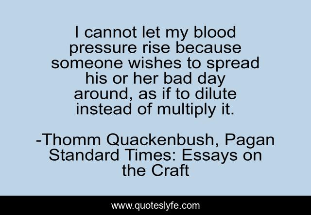 "Thomm Quackenbush, Pagan Standard Times: Essays on the Craft Quotes." Quoteslyfe.com, 2025. Mon. 08 Dec. 2025. <https://www.quoteslyfe.com/quote/I-cannot-let-my-blood-pressure-rise-161547>.