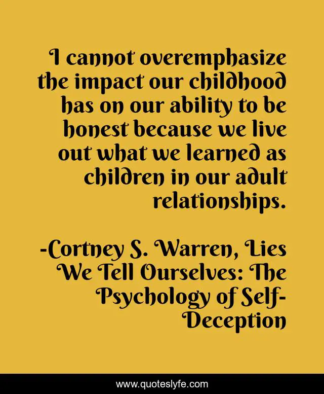 "Cortney S. Warren, Lies We Tell Ourselves: The Psychology of Self-Deception Quotes." Quoteslyfe.com, 2025. Sun. 07 Dec. 2025. <https://www.quoteslyfe.com/quote/I-cannot-overemphasize-the-impact-our-childhood-99774>.