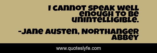 This page presents the quote "I cannot speak well enough to be unintelligible.". Author of this quote is Jane Austen, Northanger Abbey. This quote is about expression, convoluted-speech, humor, intelligibility, sarcasm,.