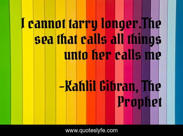 "Kahlil Gibran, The Prophet Quotes." Quoteslyfe.com, 2025. Fri. 05 Dec. 2025. <https://www.quoteslyfe.com/quote/I-cannot-tarry-longer-The-sea-that-142122>.