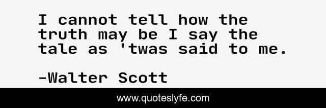 This page presents the quote "I cannot tell how the truth may be I say the tale as 'twas said to me.". Author of this quote is Walter Scott. .