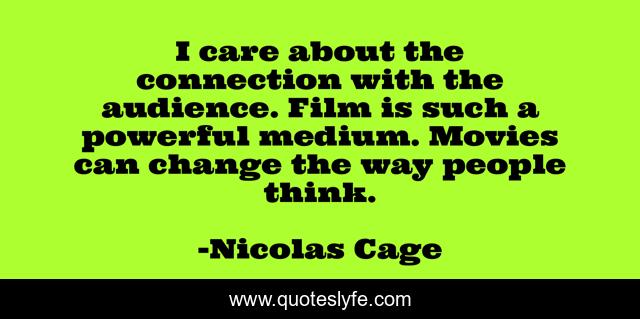 This page presents the quote "I care about the connection with the audience. Film is such a powerful medium. Movies can change the way people think.". Author of this quote is Nicolas Cage. This quote is about powerful, change, people,.