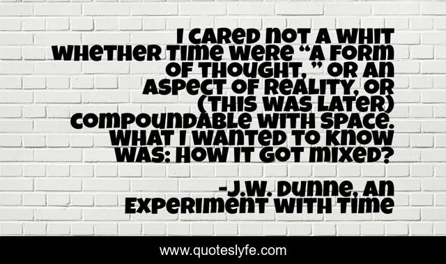 "J.W. Dunne, An Experiment with Time Quotes." Quoteslyfe.com, 2025. Fri. 05 Dec. 2025. <https://www.quoteslyfe.com/quote/I-cared-not-a-whit-whether-Time-227912>.