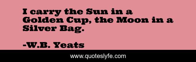 This page presents the quote "I carry the Sun in a Golden Cup, the Moon in a Silver Bag.". Author of this quote is W.B. Yeats. This quote is about fantasy, sun-moon,.