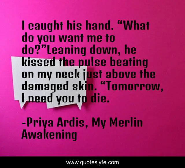 "Priya Ardis, My Merlin Awakening Quotes." Quoteslyfe.com, 2025. Tue. 09 Dec. 2025. <https://www.quoteslyfe.com/quote/I-caught-his-hand-What-do-you-17862>.