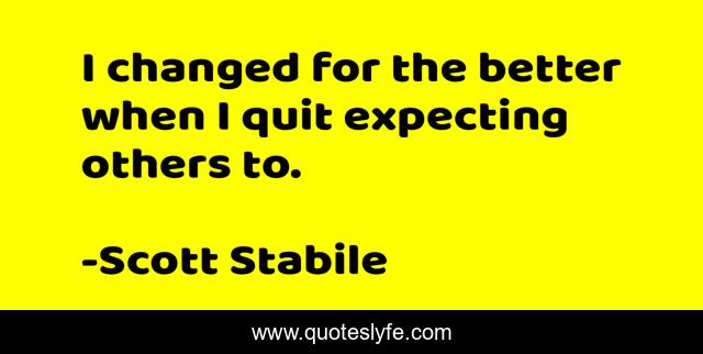 This page presents the quote "I changed for the better when I quit expecting others to.". Author of this quote is Scott Stabile. This quote is about relationships, love, change, affection,.