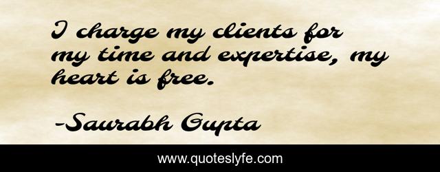 This page presents the quote "I charge my clients for my time and expertise, my heart is free.". Author of this quote is Saurabh Gupta. This quote is about ethics-and-moral-philosophy, business,.