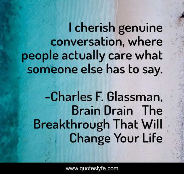 "Charles F. Glassman, Brain Drain The Breakthrough That Will Change Your Life Quotes." Quoteslyfe.com, 2025. Tue. 09 Dec. 2025. <https://www.quoteslyfe.com/quote/I-cherish-genuine-conversation-where-people-actually-258079>.