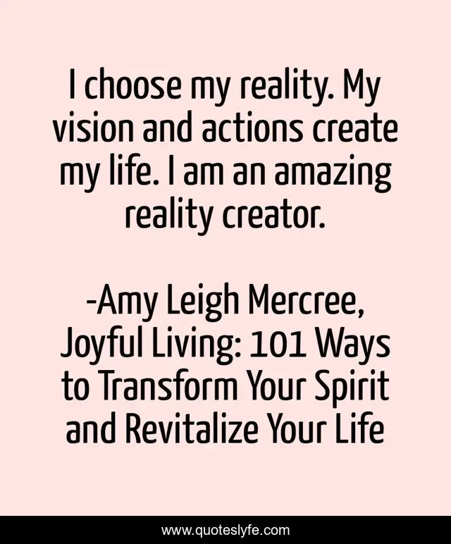 "Amy Leigh Mercree, Joyful Living: 101 Ways to Transform Your Spirit and Revitalize Your Life Quotes." Quoteslyfe.com, 2025. Mon. 08 Dec. 2025. <https://www.quoteslyfe.com/quote/I-choose-my-reality-My-vision-and-15591>.