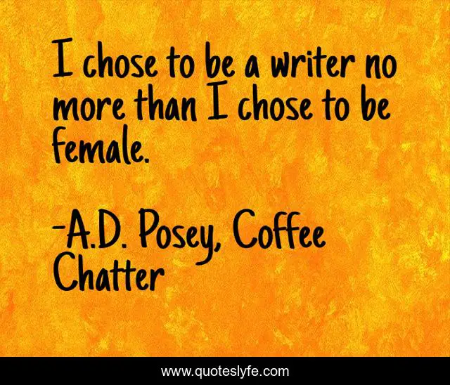 "A.D. Posey, Coffee Chatter Quotes." Quoteslyfe.com, 2025. Sat. 06 Dec. 2025. <https://www.quoteslyfe.com/quote/I-chose-to-be-a-writer-no-150892>.