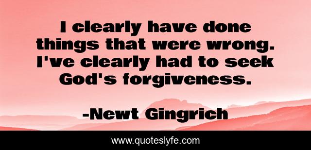 This page presents the quote "I clearly have done things that were wrong. I've clearly had to seek God's forgiveness.". Author of this quote is Newt Gingrich. This quote is about god, done, things,.