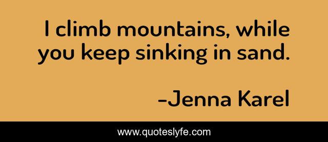 "Jenna Karel Quotes." Quoteslyfe.com, 2025. Fri. 05 Dec. 2025. <https://www.quoteslyfe.com/quote/I-climb-mountains-while-you-keep-sinking-228415>.