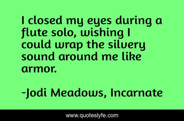 This page presents the quote "I closed my eyes during a flute solo, wishing I could wrap the silvery sound around me like armor.". Author of this quote is Jodi Meadows, Incarnate. .