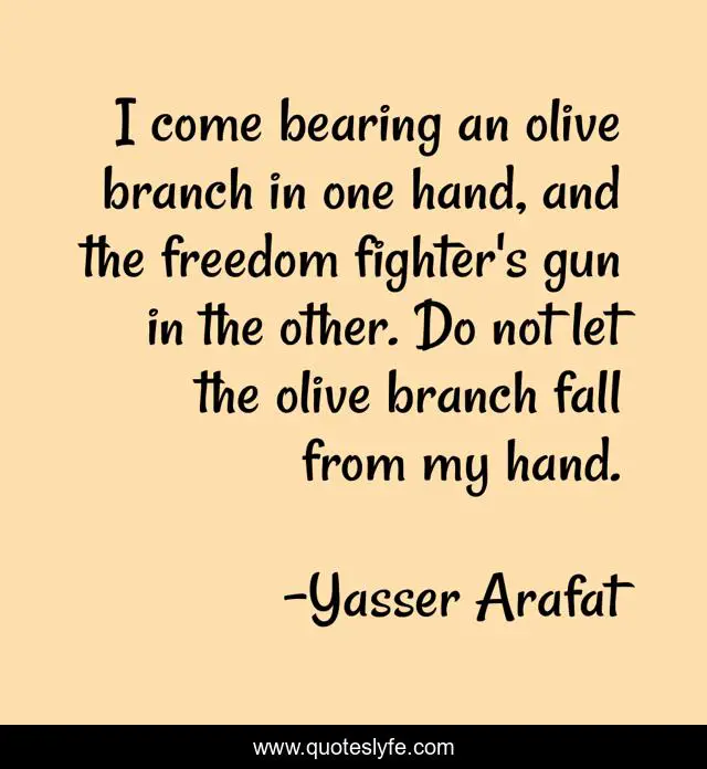 "Yasser Arafat Quotes." Quoteslyfe.com, 2025. Mon. 08 Dec. 2025. <https://www.quoteslyfe.com/quote/I-come-bearing-an-olive-branch-in-330138>.